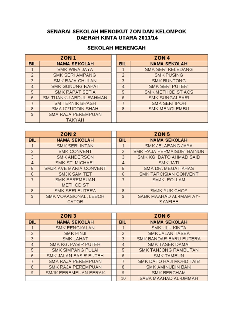 Senarai Sekolah Mengikut Zon Dan Kelompok Kinta Utara Pdf